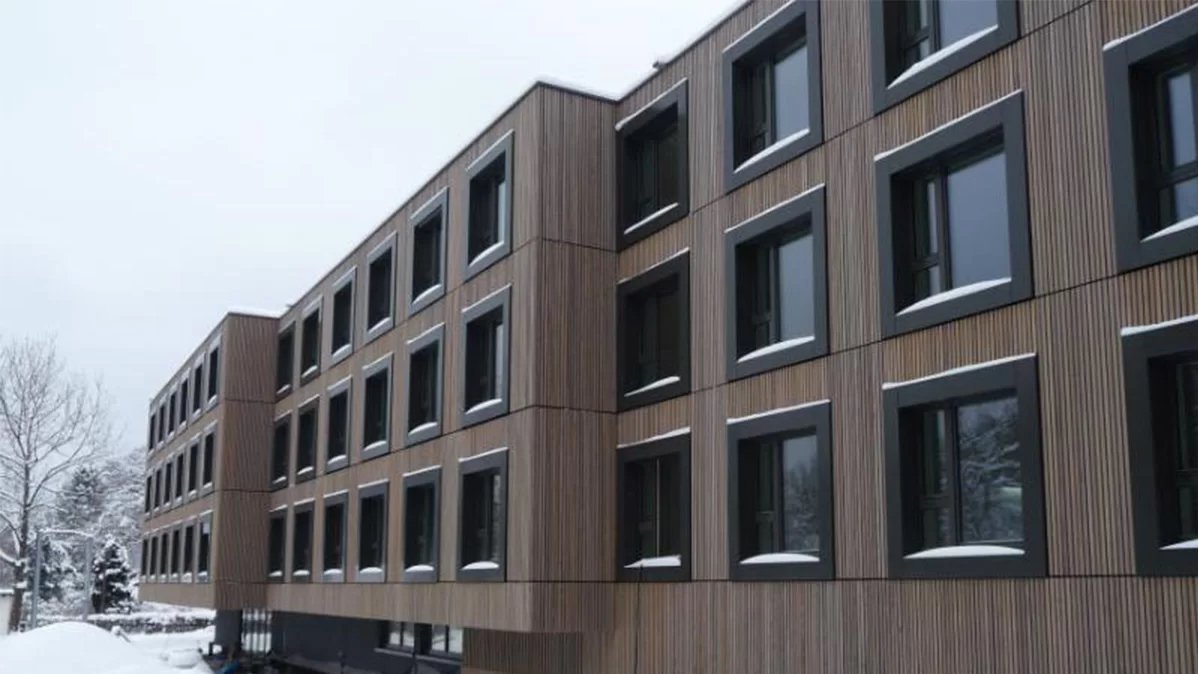 Das Gebäude verfügt weiterhin über eine Kontrollierte Be- und Entlüftungsanlage mit Wärmerückgewinnung. Die Trinkwassererwärmung erfolgt je Unterkunftszimmer mittels Frischwasserstation. So kann ein hoher hygienischer Trinkwasserstandard gewährt werden. Ergänzt wird die Gebäudetechnik durch eine energetisch hocheffiziente Gebäudehülle.